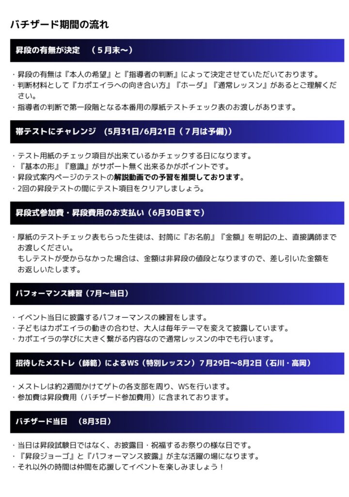 ※バチザード費用はメストレ2名の航空券・ホテル滞在費・食費・日本での国内交通移動費・メストレレッスン費・帯・バチザード会場費用・練習場所・冊子製作・その他経費等に使用します。