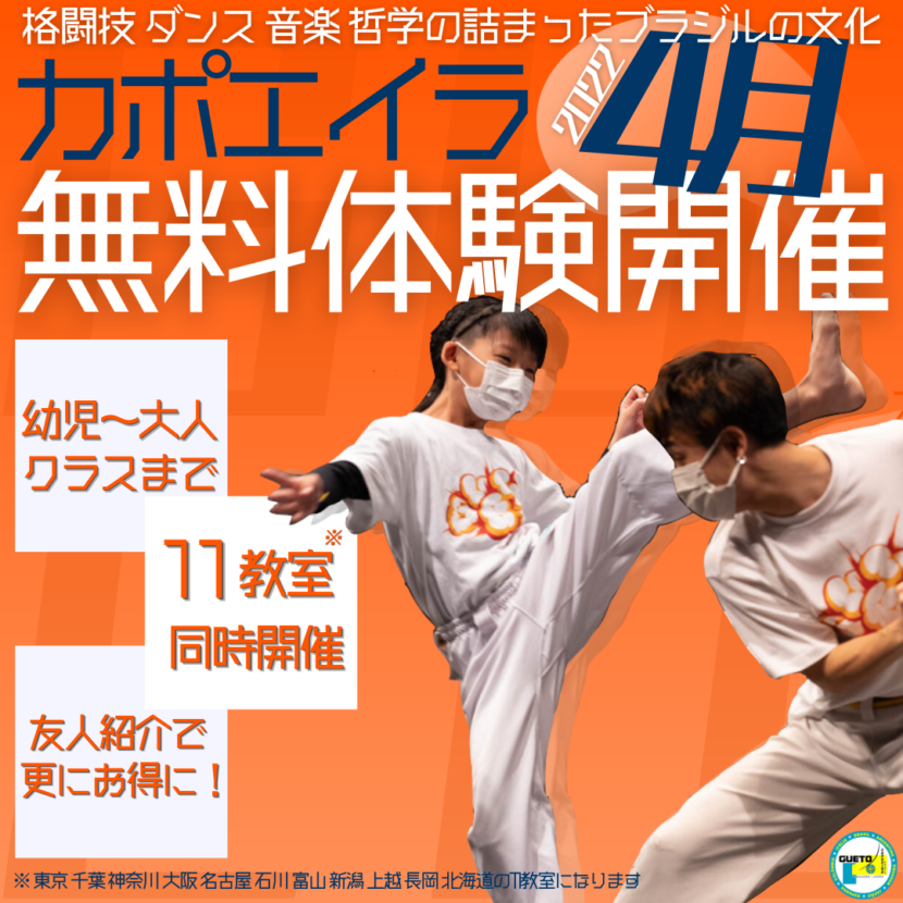 【2022年4月】ゲトカポエイラ全国11教室 – 今だけ体験無料キャンペーン実施!