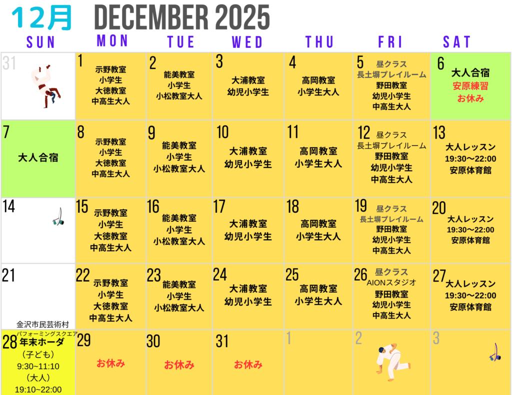子どもクラスは特にクラスにより講師が異なる、定員を超えるクラスもある為ご了承ください。